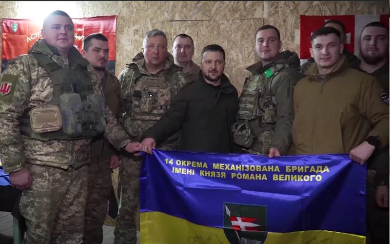 Президент України Володимир Зеленський відвідав командний пункт 14-ї окремої механізованої бригади імені князя Романа Великого, яка боронить Купʼянськ. Про це він повідомив у своєму телеграм каналі "Обговорили важливі питання з комбригом, поспілкувалися з воїнами, вручив їм нагороди. Завжди честь – бути з нашими ...