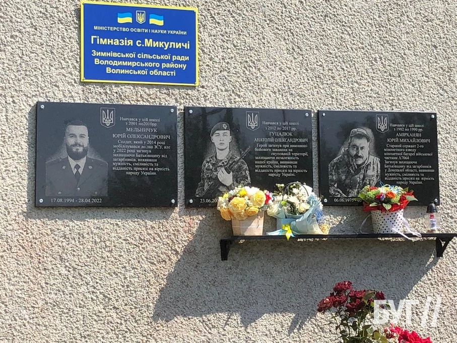19-го серпня у гімназії села Микуличі Зимнівської громади відкрили пам’ятні дошки на честь загиблих воїнів Юрія Амірханяна, Юрія Мельничука та Антолія Гуцалюка. Усі троє загилих у війні з росією Героїв були випускниками цього навчального закладу. У церемонії відкриття пам’ятної дошки взяли участь голова Зимнівської ...