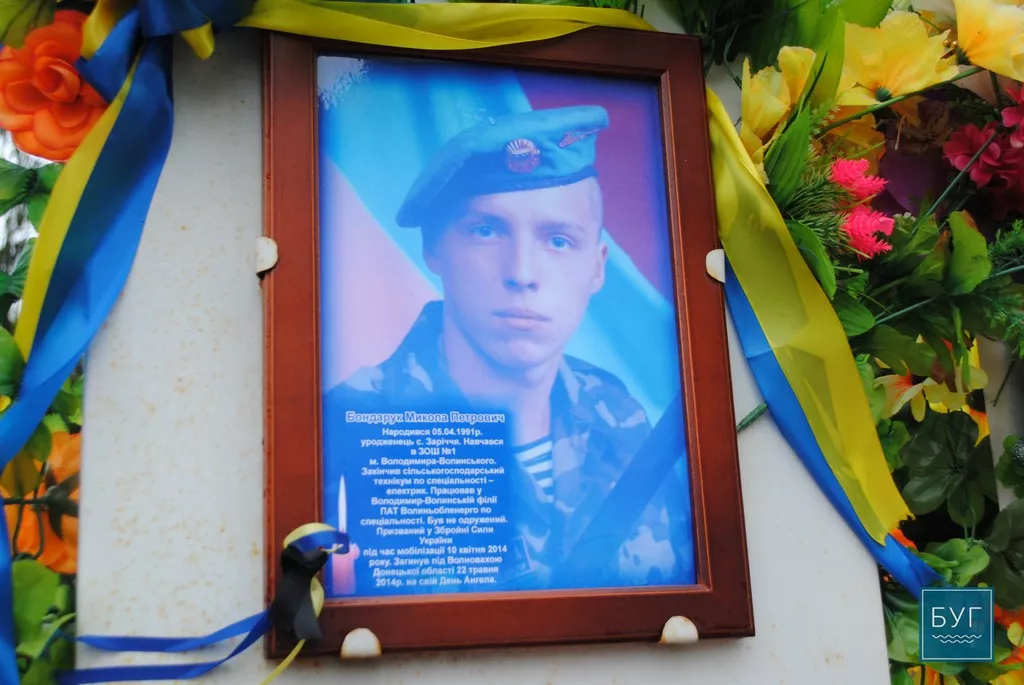 В агротехнічному коледжі відкрито дошку пам’яті : Миколи Бондарука та Дмитра Колєснікова. У середу, 20-го травня у Володимир-Волинському  агротехнічному коледжі урочисто відкрито дошку пам'яті колишніх випускників: Миколи Бондарука та Дмитра Колєснікова, які загинули, захищаючи незалежність та територіальну ...